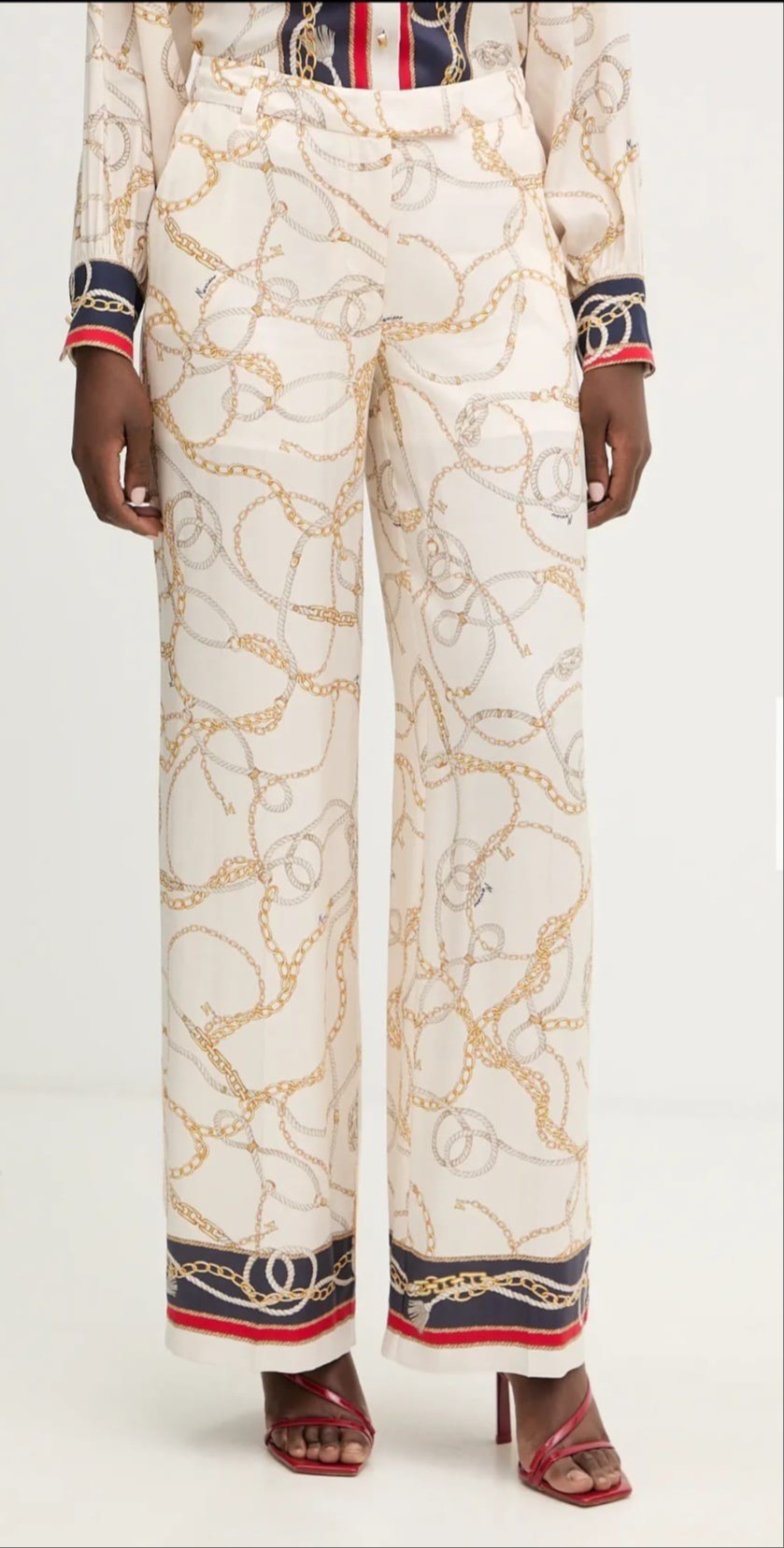 Pantalone Marciano in raso di viscosa, tasche laterali con dietro fascia elastica e passanti